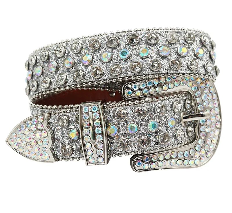 ✅ Engraved Rhinestone Buckle: Heavy-duty zinc alloy buckle with detailed studded engraving.